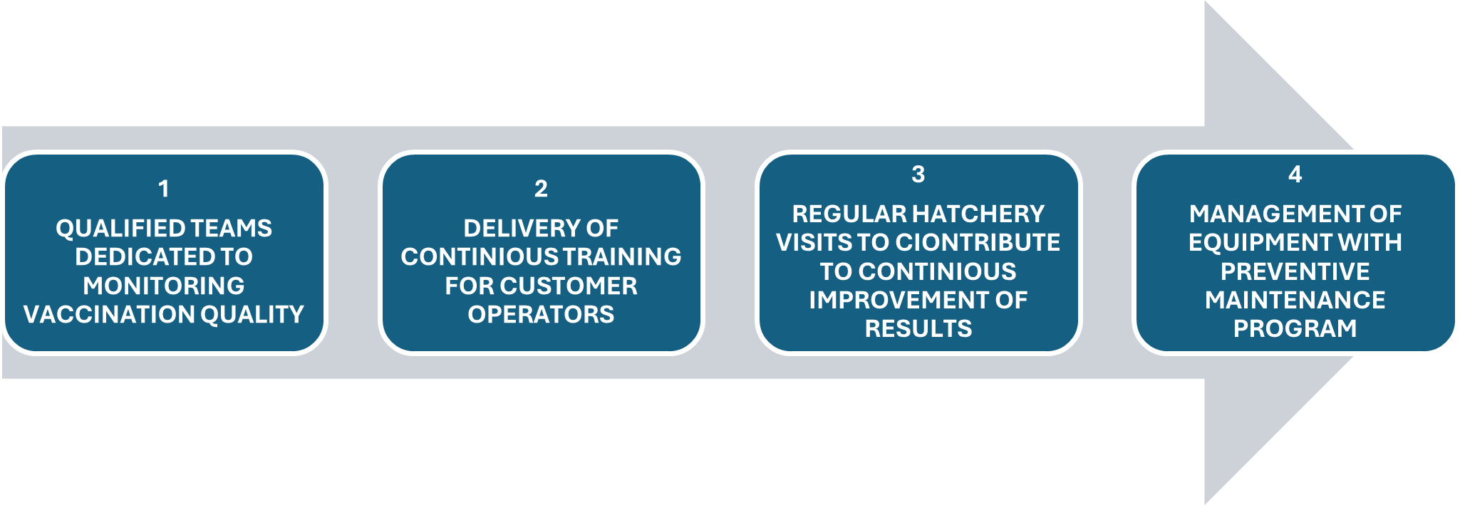 In the C.H.I.C.K Program®, we make available a full set of procedures (SOP’s) to train and evaluate hatchery staff on the best practices for every stage in the hatchery vaccination process. From storage of vaccines, vaccine mixing procedures, and administration quality through to equipment care, all steps are carefully covered for successful vaccination. |